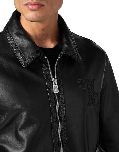 BILLIONAIRE LEATHER BOMBER WITH PYTONE INSERTS
