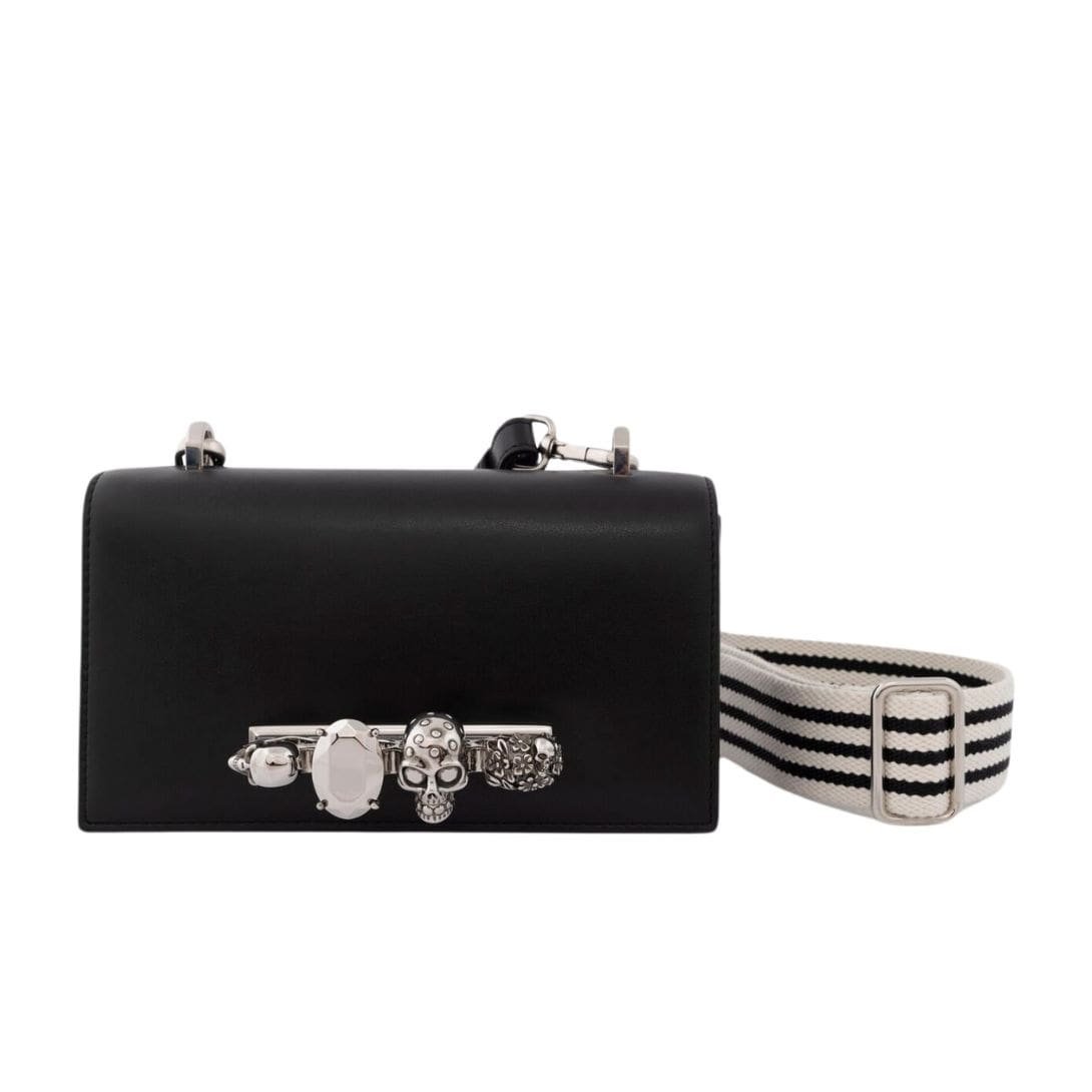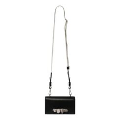 This Alexander Mcqueen Mans The Knuckle Satchel In Black bag, made in Italy, combines luxury with practicality, making it a versatile accessory for any occasion. Measuring 21.5 x 12 x 5.5 cm (8.2 x 4.7 x 2.1 inches), it is compact yet spacious enough to accommodate your essentials, including smartphones. The bag features a strap drop that ranges from 40 to 70 cm (15.7 to 27.5 inches), providing flexible carrying options.