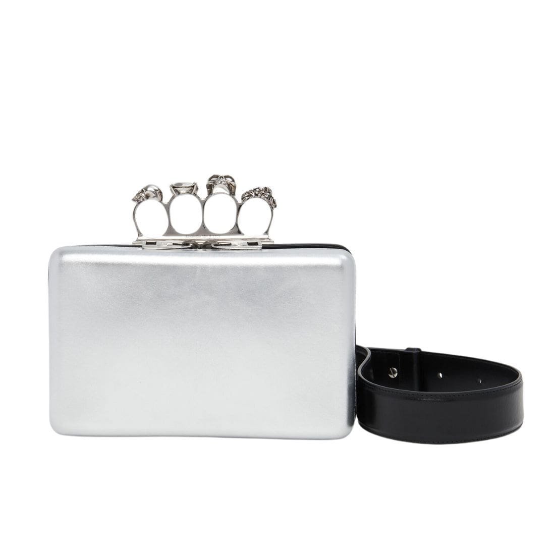 ALEXANDER MCQUEEN MANS THE KNUCKLE TWISTED CLUTCH IN SILVER