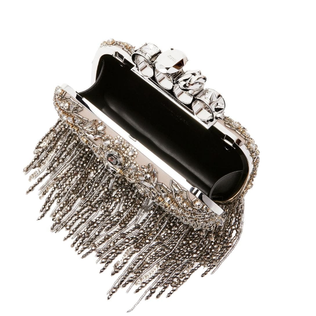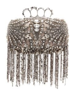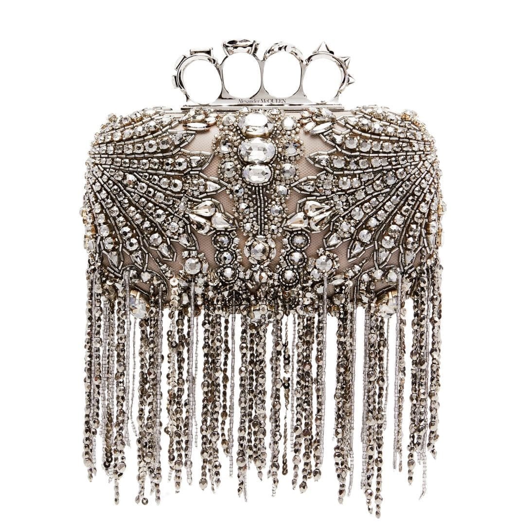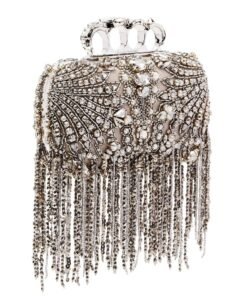 ALEXANDER MCQUEEN WOMANS EXPLODED VICTORIAN JEWEL KNUCKLE CLUTCH IN SILVER