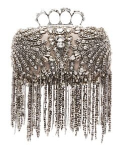 ALEXANDER MCQUEEN WOMANS EXPLODED VICTORIAN JEWEL KNUCKLE CLUTCH IN SILVER