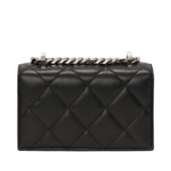 Inside, you’ll find one main compartment and a convenient card slot, allowing for organized storage of your belongings. The black suede-effect lining enhances the bag’s luxurious feel while ensuring your items are protected.