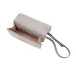 Inside, you’ll find one main compartment and a convenient card slot, allowing for organized storage of your belongings. The black suede-effect lining enhances the bag’s luxurious feel while ensuring your items are protected.