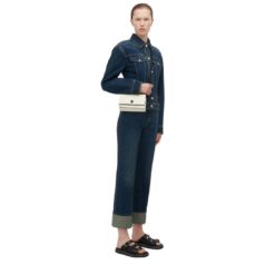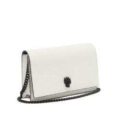 The design includes a biker-inspired leather strap, adding an edgy touch to its chic appearance. Despite its compact size, this bag comfortably accommodates smartphones, making it both practical and fashionable.