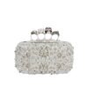 The silver-finished handle is beautifully adorned with crystal-encrusted rings, adding a touch of glamour to any outfit. It also comes with a detachable chain strap for added convenience.