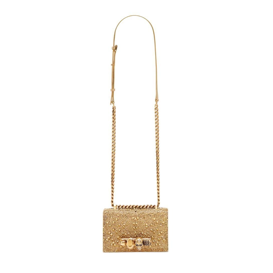 ALEXANDER MCQUEEN WOMENS THE MINI JEWELLED SATCHEL IN GOLD