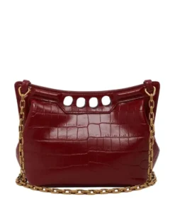Inspired by the sharp and structured shoulders of tailoring silhouettes, this Alexander McQueen women?s the peak mini with chain in Dark red bag combines a curve-shaped magnetic frame with a soft body. Handcrafted from a black croc-effect vegan material, it offers quality and durability. The Peak bag can be worn over the shoulder or across the body with its antique gold-finished chain strap.