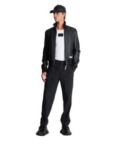 Constructed from premium materials, the jacket exudes luxury and durability. The outer shell boasts a sleek, lustrous finish, enhancing its visual appeal and lending a touch of sophistication to any ensemble. Its tailored silhouette strikes a harmonious balance between structure and comfort, ensuring a flattering fit that accentuates the wearer’s physique.