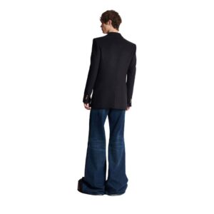 Crafted with meticulous attention to detail, the coat features a tailored silhouette that accentuates the wearer’s frame with precision. The structured shoulders provide a strong and defined look, reminiscent of traditional military uniforms, while the streamlined design ensures a modern and sleek appearance.