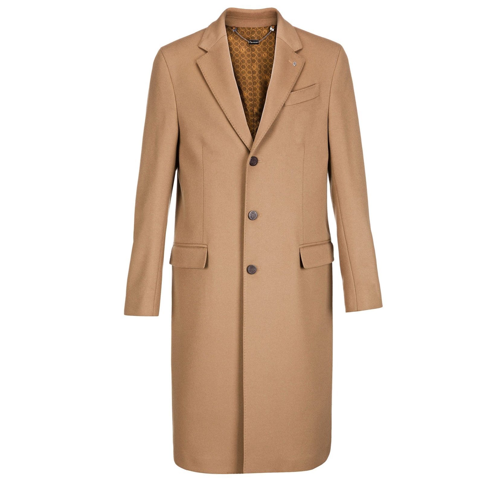 Billionaire Coat Long ”Edison” wool mono-breasted coat enriched by leather details. leather-covered buttons enriched by metal crest. three front flapped pockets. chest welt double pocket with logo embroidered at .center back single vent. fully lined. three internal pockets.