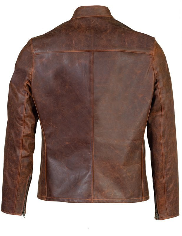 Elevate your style with our Brown Leather Jacket Mens, a perfect blend of timeless design and contemporary functionality. Crafted from lightweight vintaged oiled unlined cowhide, this 26″ café racer exudes a vintage charm that complements any wardrobe. The jacket features two lower front zipper pockets, allowing both style and convenience, along with zipper sleeve cuffs for that extra edge. The poly-sleeve lining ensures a comfortable fit, making it suitable for various occasions.