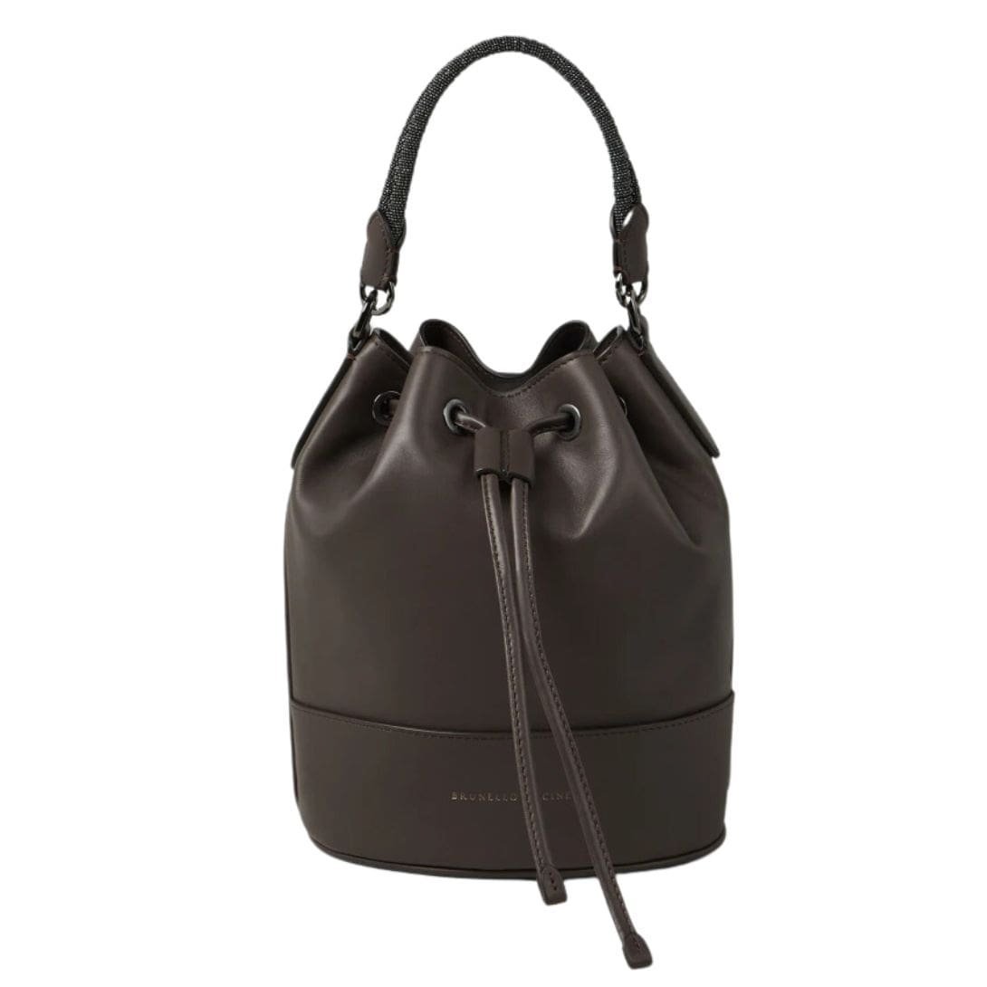 BRUNELLO CUCINELLI CALFSKIN BUCKET BAG WITH PRECIOUS BRAIDED HANDLE