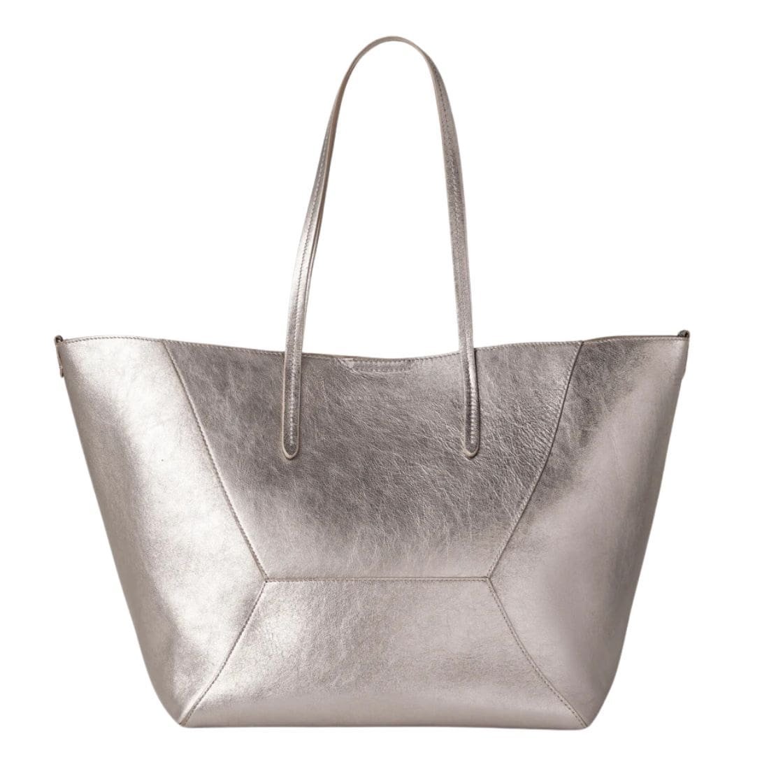 BRUNELLO CUCINELLI LAMÉ CALFSKIN SHOPPER BAG WITH MONILI