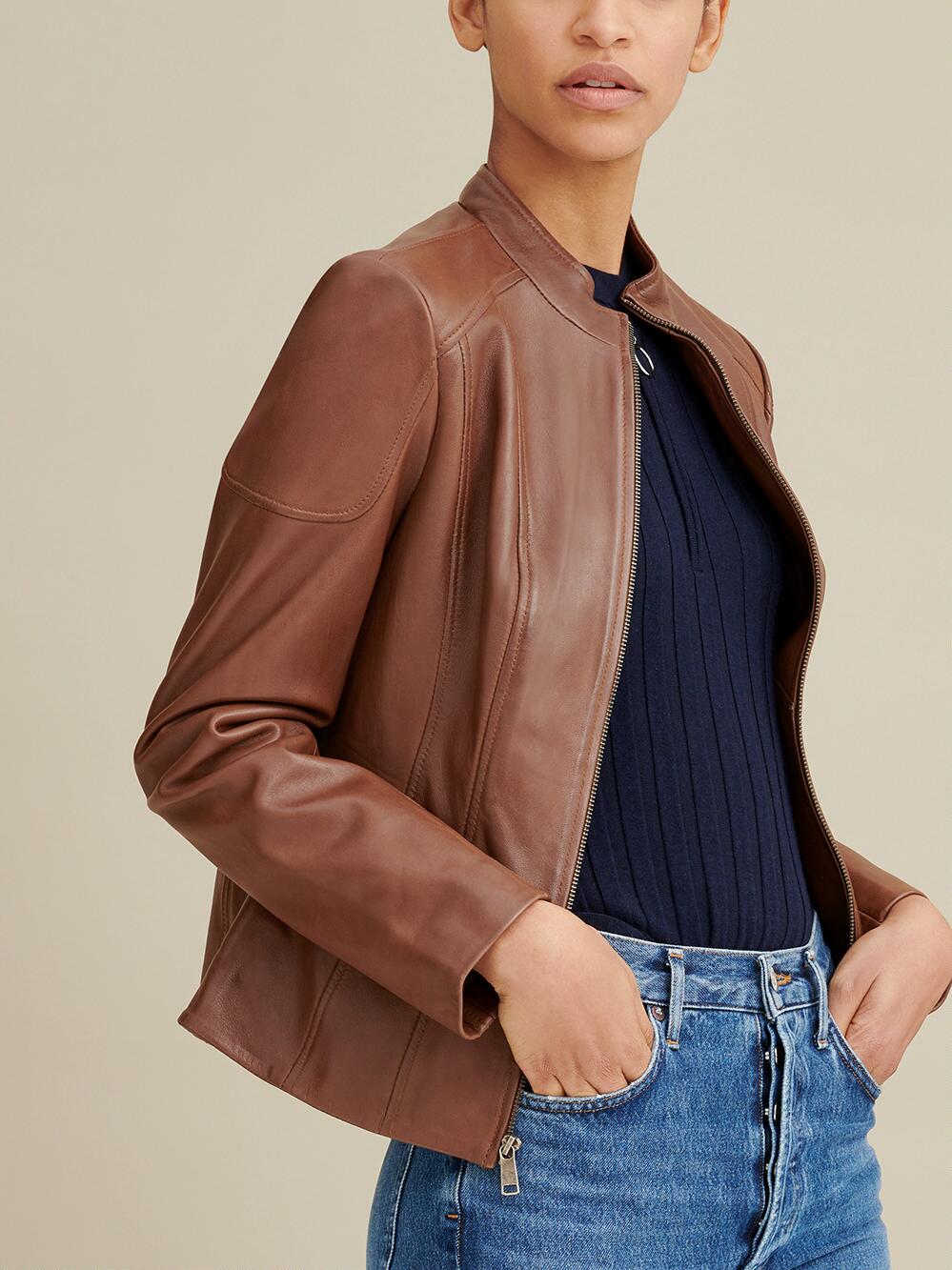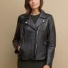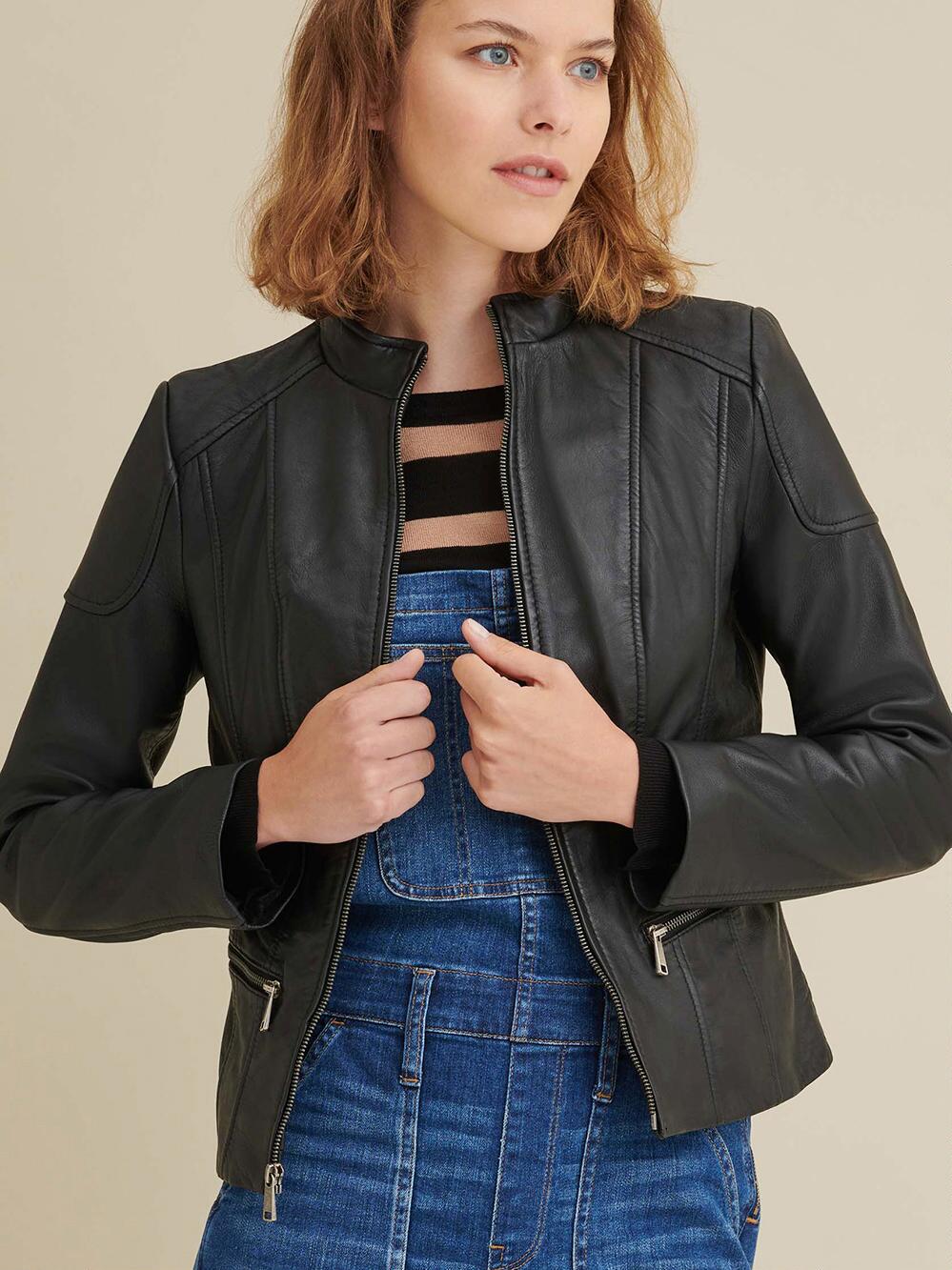 Black Caitlin Scuba Leather Jacket Women