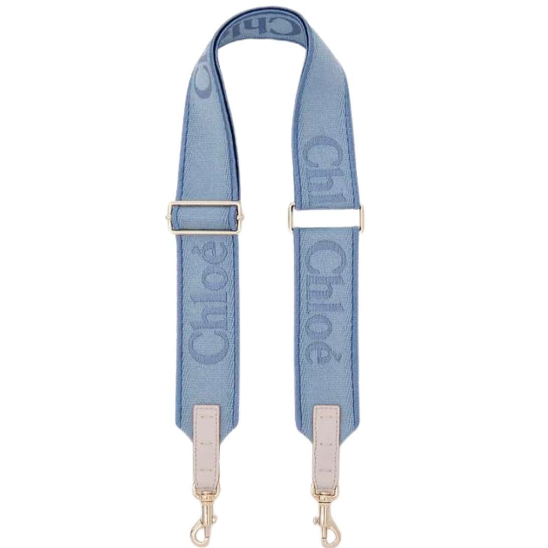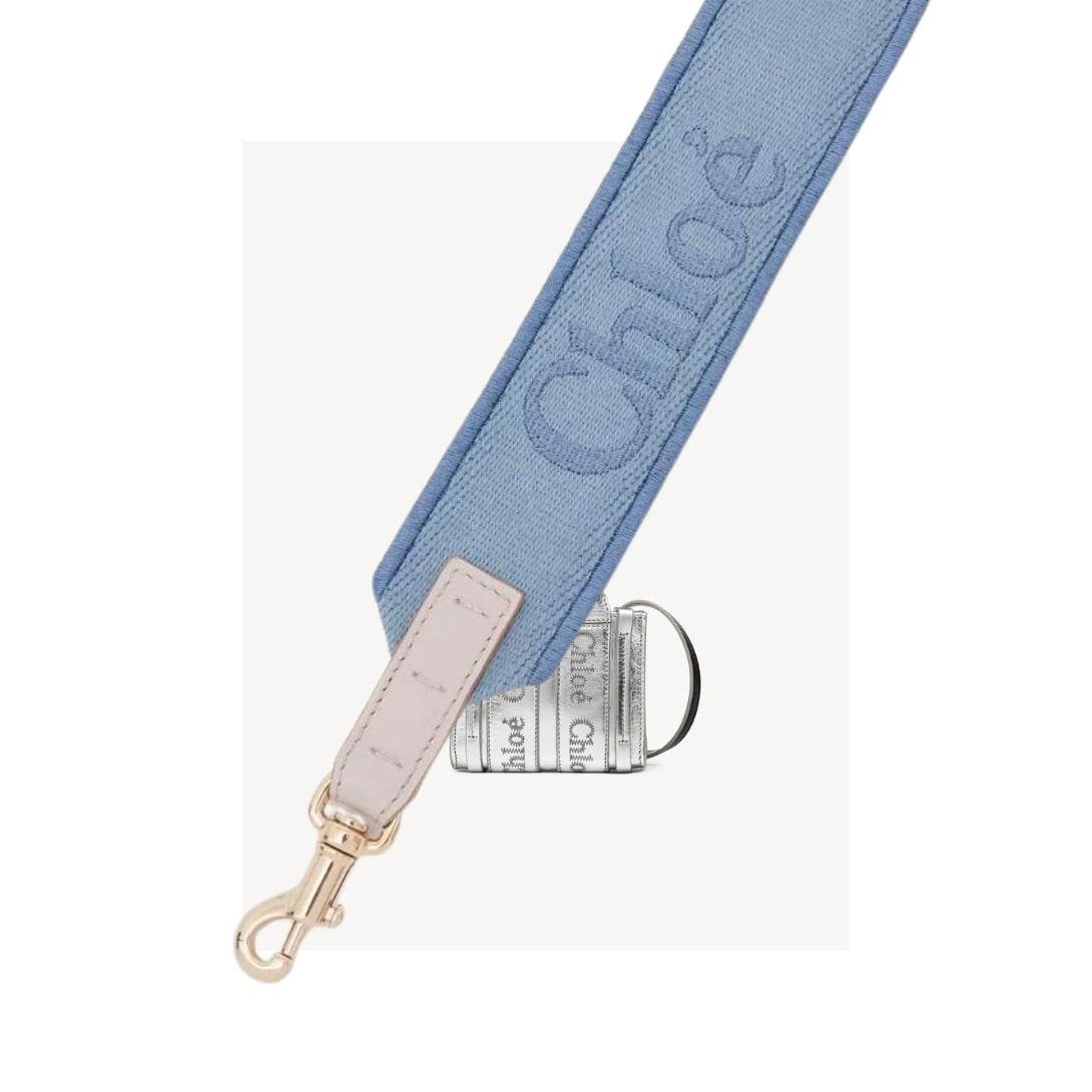Crafted from durable canvas, Chloe Adjustable Strap Washed Blue. this adjustable strap reimagines Maison Chloé’s signature accessory, offering versatility with its adjustable length feature. The strap showcases meticulous Chloé logo embroidery, exemplifying the brand’s attention to detail. Each end is adorned with a metallic hook, facilitating easy attachment to Maison Chloé’s bags and mini bags, enabling effortless shoulder or cross-body wear.