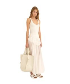 In line with Chloé’s commitment to sustainability and ethical practices, the CHLOE Carmela Tote Bag White is crafted in collaboration with Leather Working Group (LWG) certified manufacturers. This prestigious certification ensures that the leather used in its creation adheres to strict environmental standards, reflecting Chloé’s dedication to responsible sourcing and production.