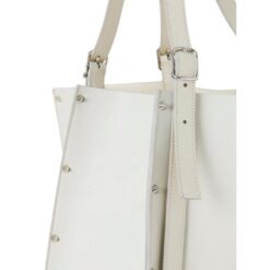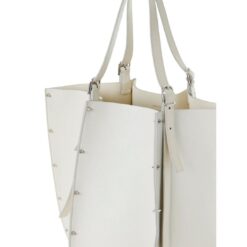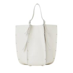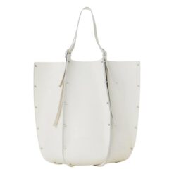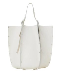 Step into the realm of timeless sophistication with the large CHLOE Carmela Tote Bag White, a captivating fusion of modern design and luxurious craftsmanship. Crafted from exquisite-grained bull skin, this statement accessory exudes an aura of understated elegance, elevated by the line’s signature spike studs that adorn its exterior, effortlessly catching and reflecting the light with every movement.