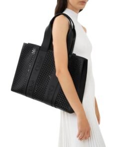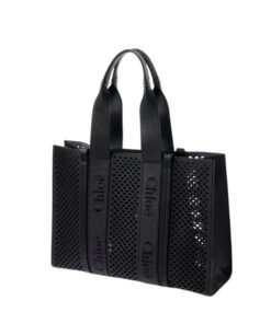 Crafted from luxurious-grained calfskin, the Chloe Large Woody Tote Bag Black. epitomizes the brand’s signature aesthetic with its perforated scallops, a motif deeply rooted in Chloé’s DNA. This spacious day bag boasts an elevated aesthetic, perfect for the modern woman seeking style and functionality in her accessories.