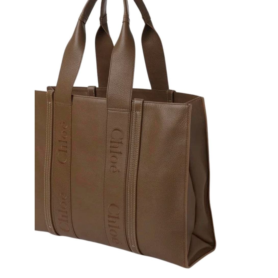 Indulge in understated luxury with the Chloe Large Woody Tote Bag Dark Nut. by Chloe, a testament to timeless sophistication and impeccable craftsmanship. Crafted from smooth calfskin, this tote bag offers a natural look with a luxurious feel, elevating any ensemble with its refined aesthetic.