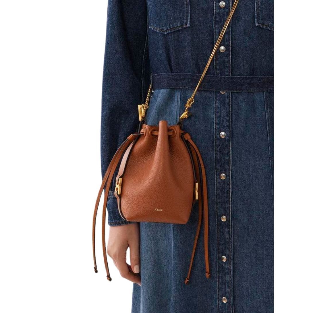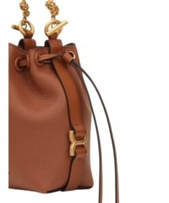 The bag’s chain strap, elegantly knotted at the base, lends a refined aesthetic, while the understated embossed Chloé logo serves as a subtle nod to the brand’s legacy. Designed to be carried effortlessly, this micro bucket bag effortlessly transitions from day to night, making it a versatile addition to any wardrobe.