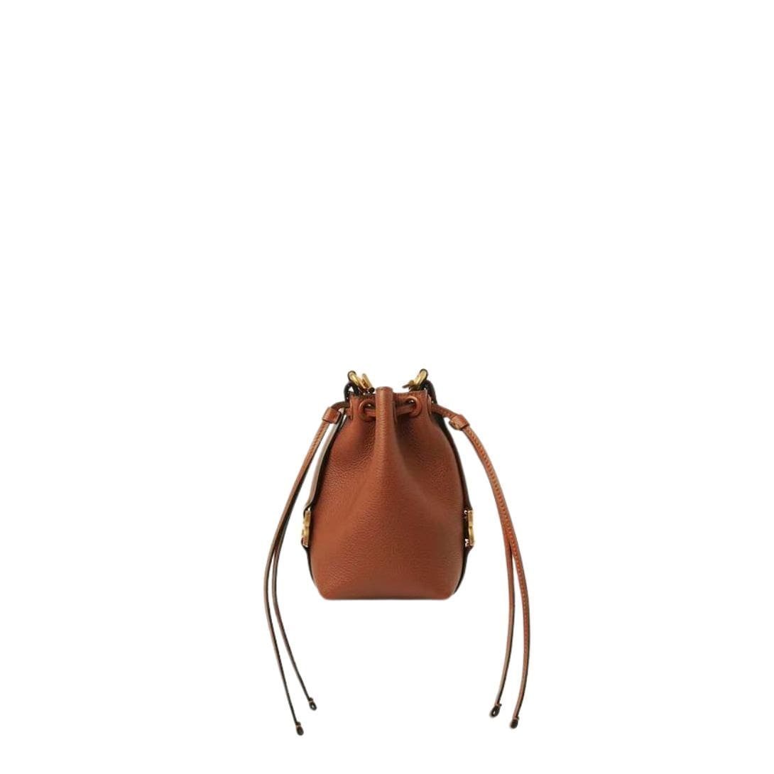 Chloe Marcie Micro Bucket Tan. line receives a contemporary update with the introduction of this micro bucket bag, meticulously crafted from the brand’s renowned soft, grained calfskin leather. Exuding an aura of timeless elegance, this accessory features a spacious main compartment secured with a leather drawstring closure, ensuring both practicality and style.
