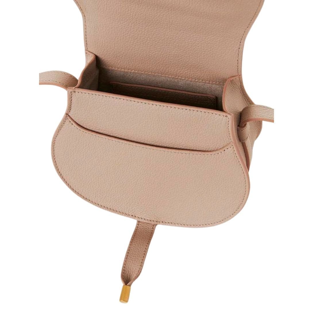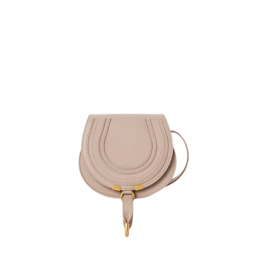 Immerse yourself in the timeless elegance of the Chloe Marcie Small Saddle Bag Floral Grey. by Maison Chloe, meticulously crafted from luxurious-grained calfskin. This exquisite accessory embodies Maison Chloe’s signature blend of masculine and feminine elements, showcased through its harmonious mix of a clean top line and round silhouette.