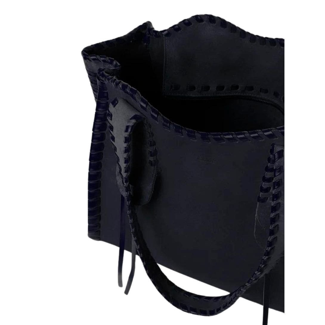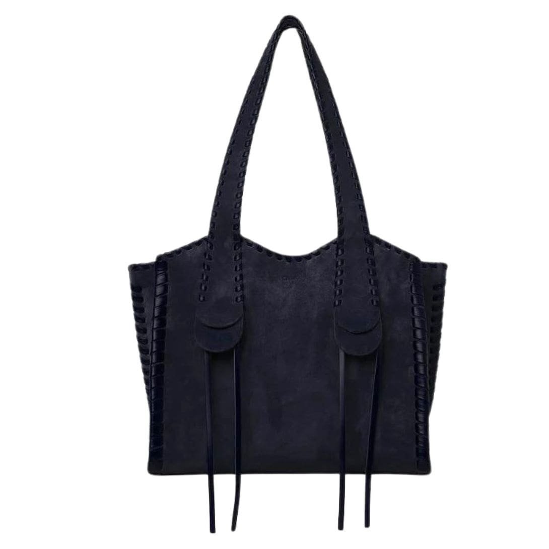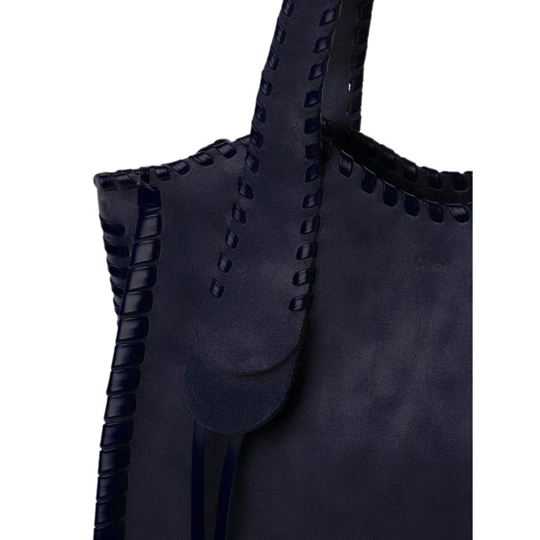 Step into sophistication with the Chloe Medium Mony Tote Bag Midnight Blue. by Chloe, a testament to timeless elegance and expert craftsmanship. Crafted from suede calfskin, meticulously contoured with whip stitching in tonal shiny calfskin, this tote bag exudes luxury and refinement, offering both decorative detail and textural contrast.
