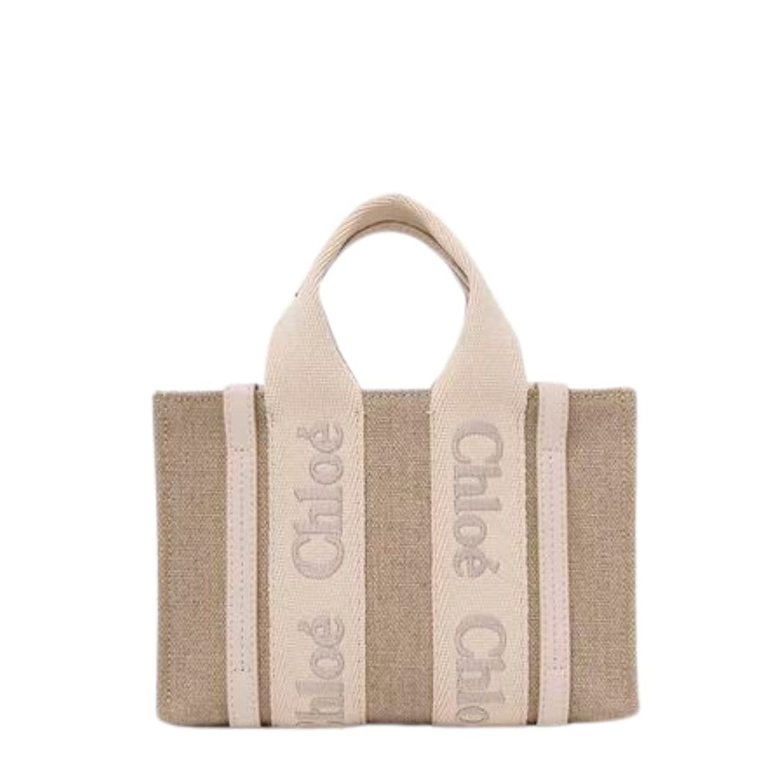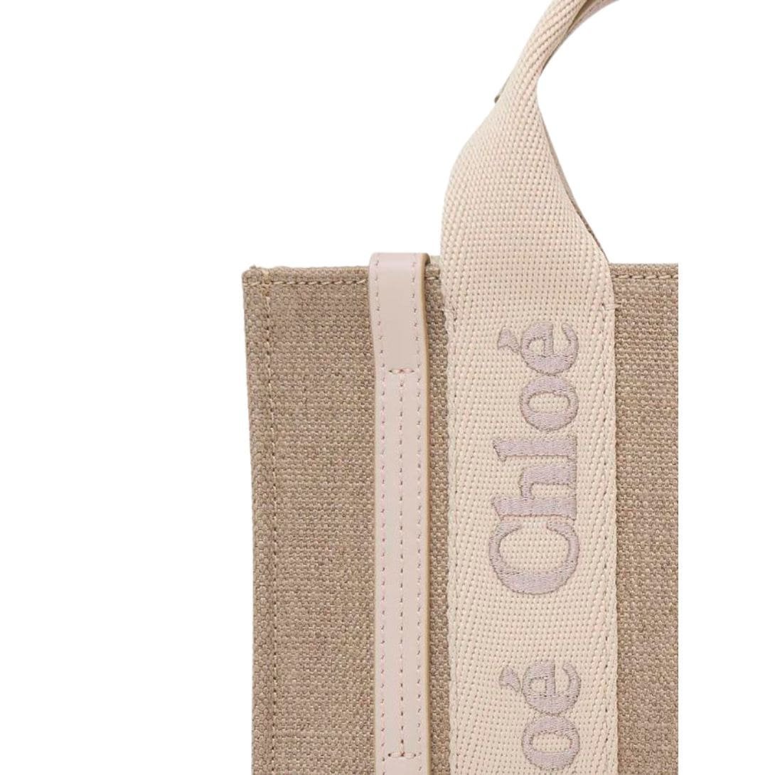 CHLOE MINI WOODY TOTE BAG IN LINEN WILD GREY