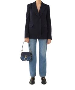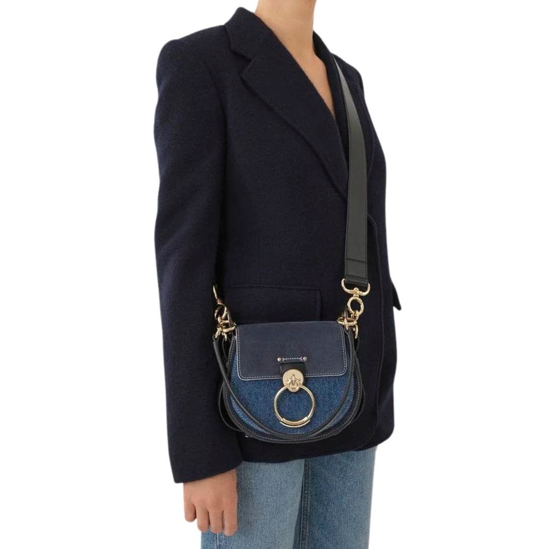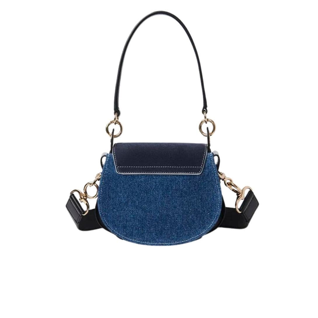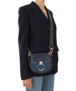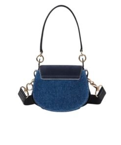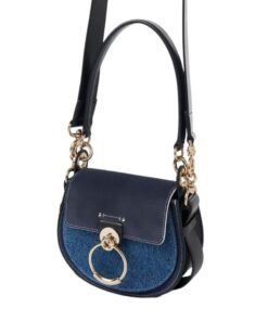 Crafted with meticulous attention to detail, the Chloe Small Tess Bag Denim. epitomizes sophistication and versatility. Its elegant combination of shiny calfskin and suede calfskin creates a luxurious texture that exudes timeless charm. The bag’s round silhouette, a hallmark of Chloe’s design ethos, reflects the brand’s DNA with grace and poise.
