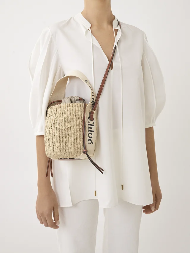Designed with versatility in mind, the basket features a convenient drawstring fastening and a long leather strap that allows for effortless shoulder and cross-body wear. Drawing inspiration from Chloe’s iconic Woody mule, the basket is adorned with Maison’s signature Chloe logo ribbon, adding a touch of sophistication to its natural fibre construction.