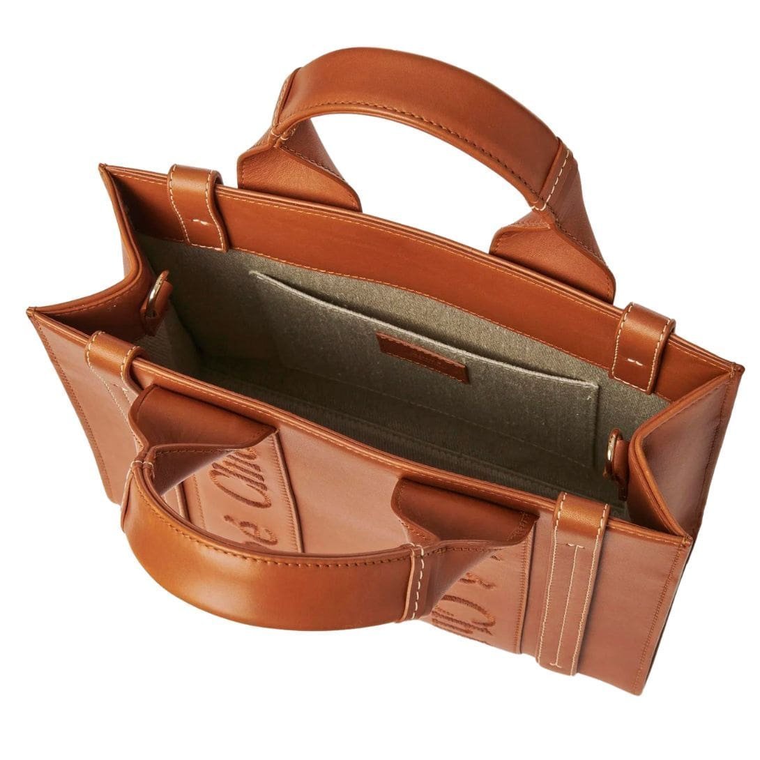 Indulge in understated luxury with the CHLOE Small Woody Tote Bag Caramel, meticulously crafted from smooth calfskin to offer a natural look and a uniquely luxurious feel. Designed to seamlessly transition from day to evening, this versatile accessory epitomizes sophistication and practicality. With its long, removable strap and top handles, it offers multiple carrying options, allowing you to effortlessly switch between different styles.