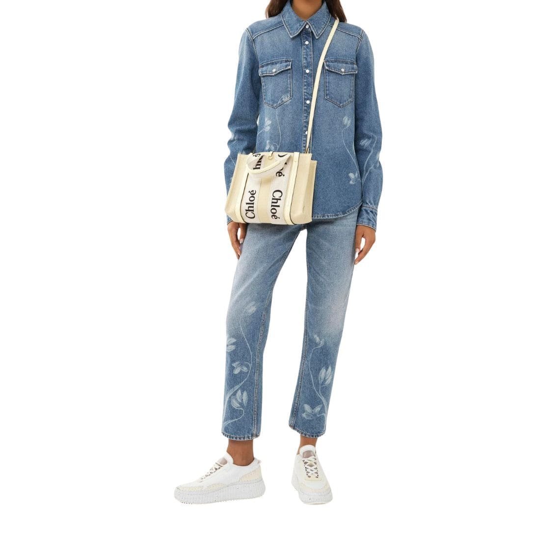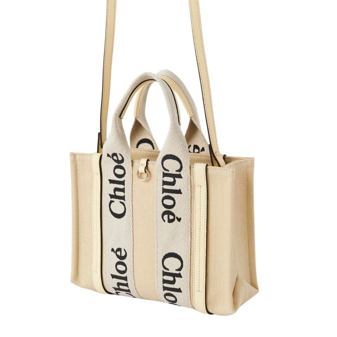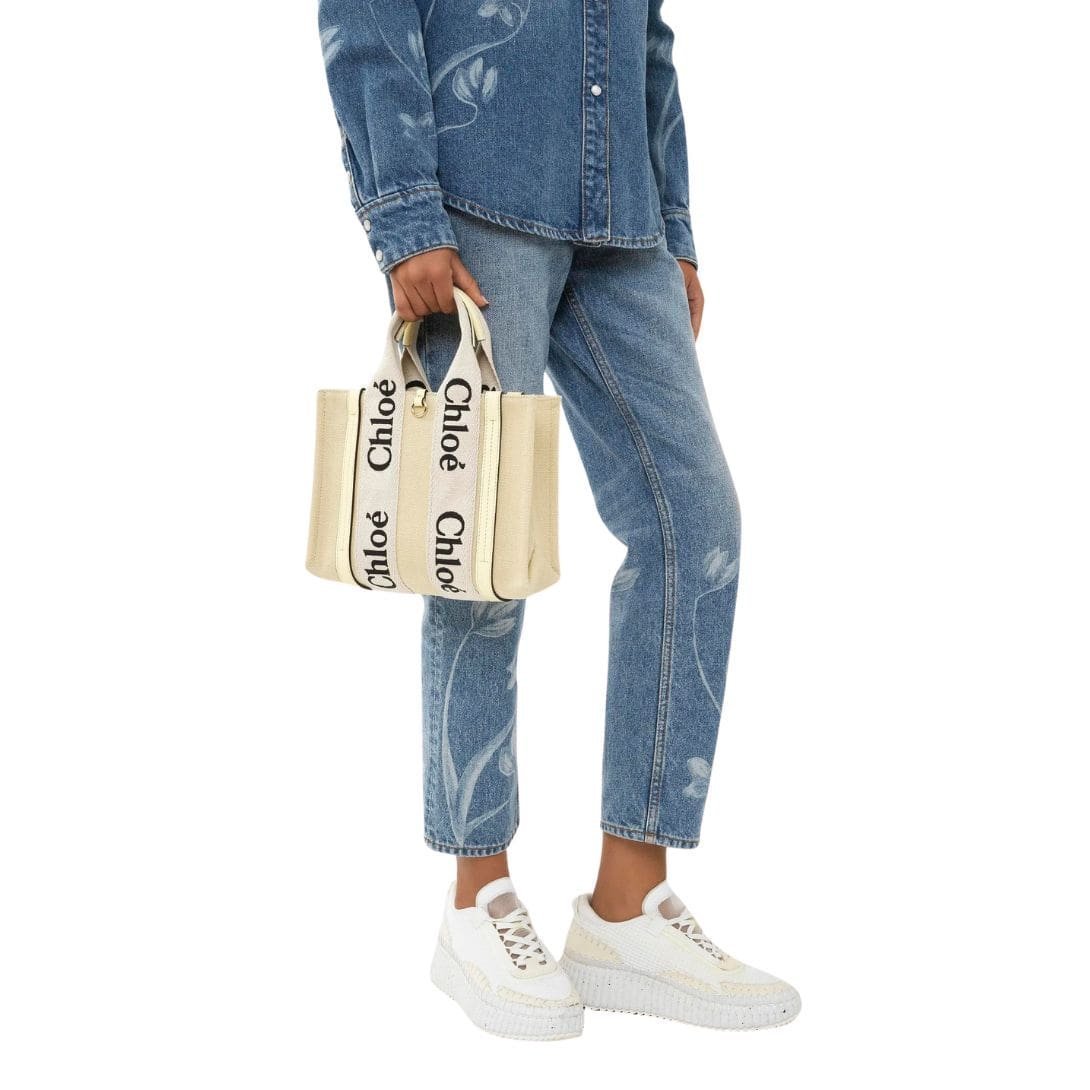 Crafted with meticulous attention to detail, the CHLOE Small Woody Tote Bag Coconut Milk embodies sophistication and versatility in its design. Comprising a harmonious fusion of linen canvas and glossy calfskin accents, this small yet elegant accessory exudes a timeless appeal. The combination of these materials not only adds textural interest but also underscores Chloe’s commitment to sustainable practices by incorporating environmentally conscious elements.