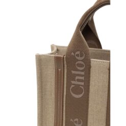 CHLOE SMALL WOODY TOTE BAG IN LINEN DARK NUT