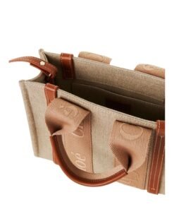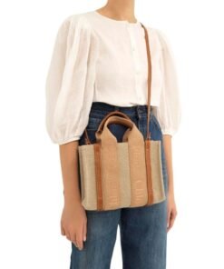The Chloe Small Woody Tote Bag Soft Tan stands as a testament to the brand’s commitment to marrying style with sustainability. Crafted with meticulous attention to detail, this accessory showcases a captivating interplay of textures, blending linen canvas with shiny calfskin to create a soft yet luxurious aesthetic.