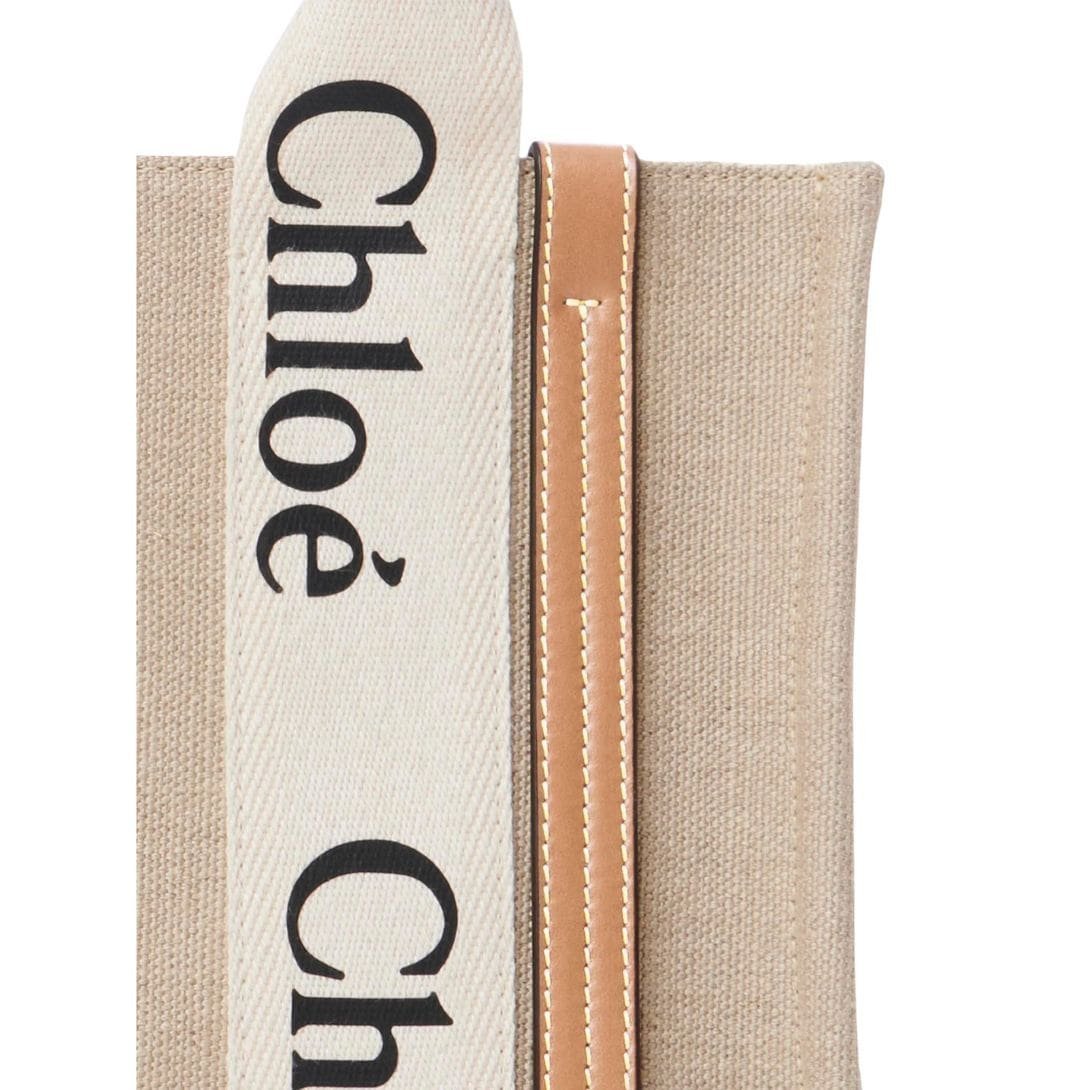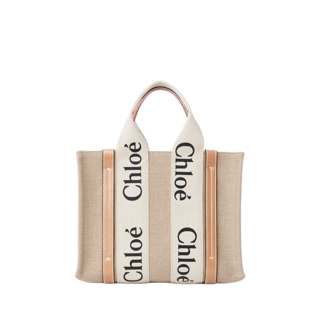 CHLOE SMALL WOODY TOTE BAG WHITE AND BEIGE