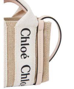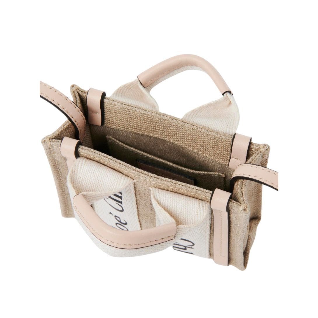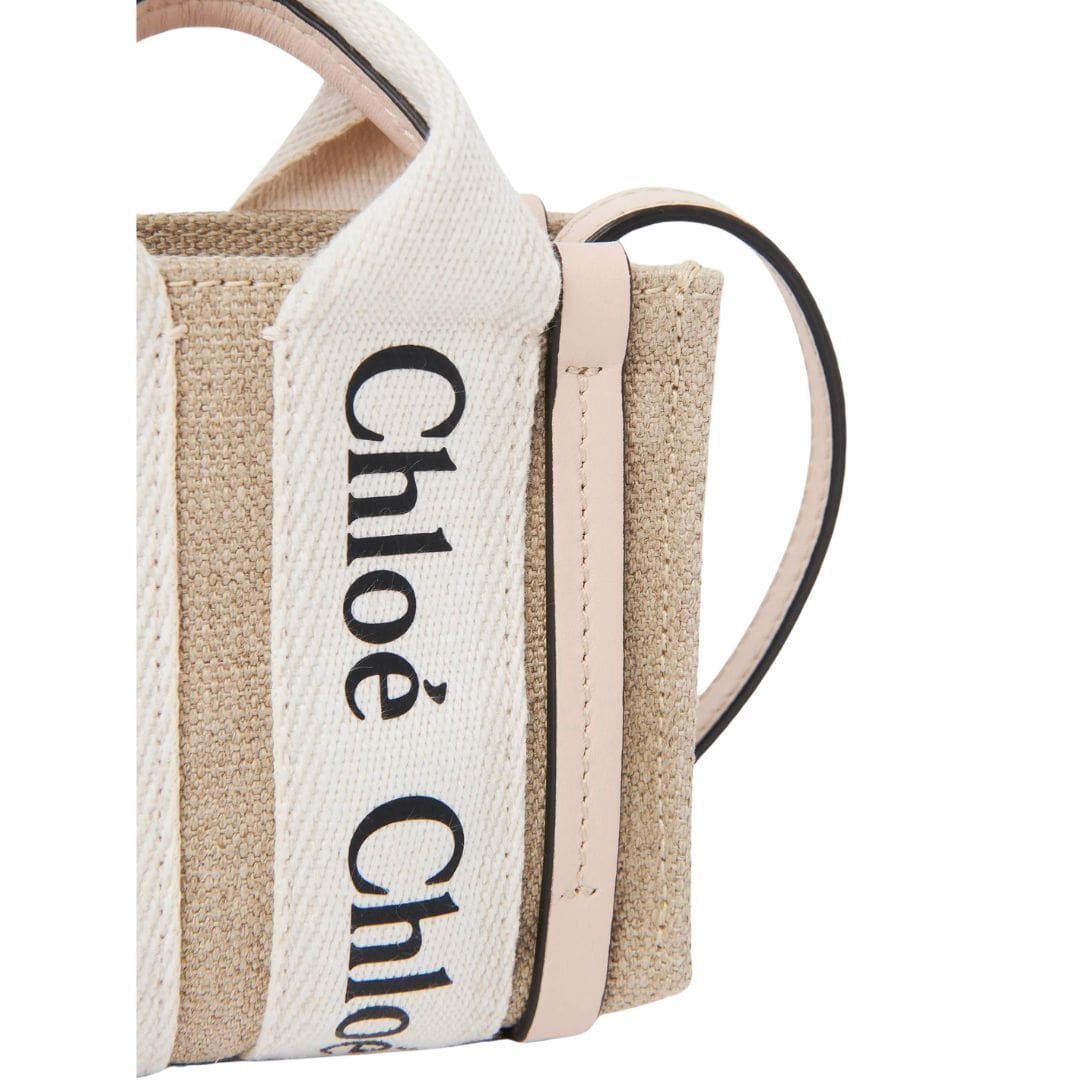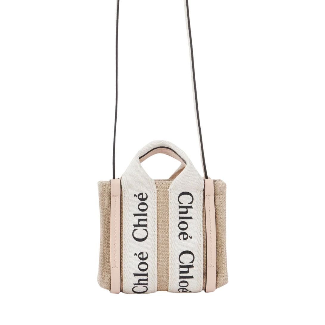Exuding the essence of timeless elegance in a compact form, the CHLOE Woody Nano Tote Cement Pink epitomizes sophistication and functionality. Crafted with meticulous attention to detail, this miniature rendition of the iconic Woody line showcases a seamless blend of linen canvas and lustrous calfskin accents, epitomizing Chloe’s dedication to refined craftsmanship and sustainable sourcing.