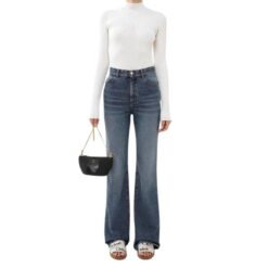 This versatile accessory seamlessly transitions from day to evening, exuding a feminine charm with its rounded silhouette and straight top line. The Maison’s signature Drew chain, knotted at the base, adds a touch of sophistication and elevates the overall aesthetic.