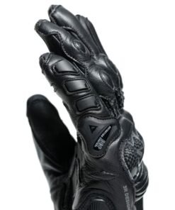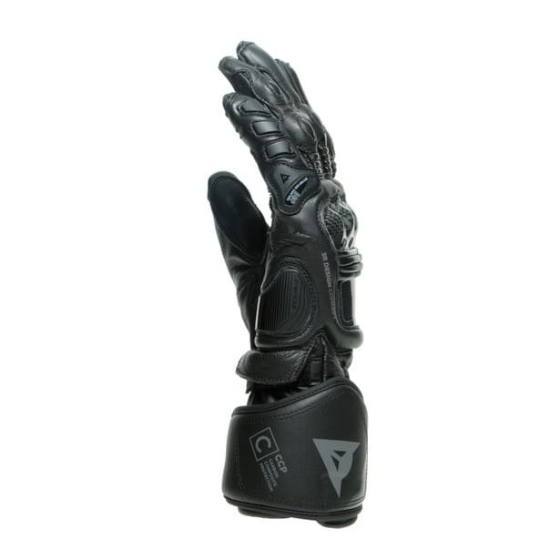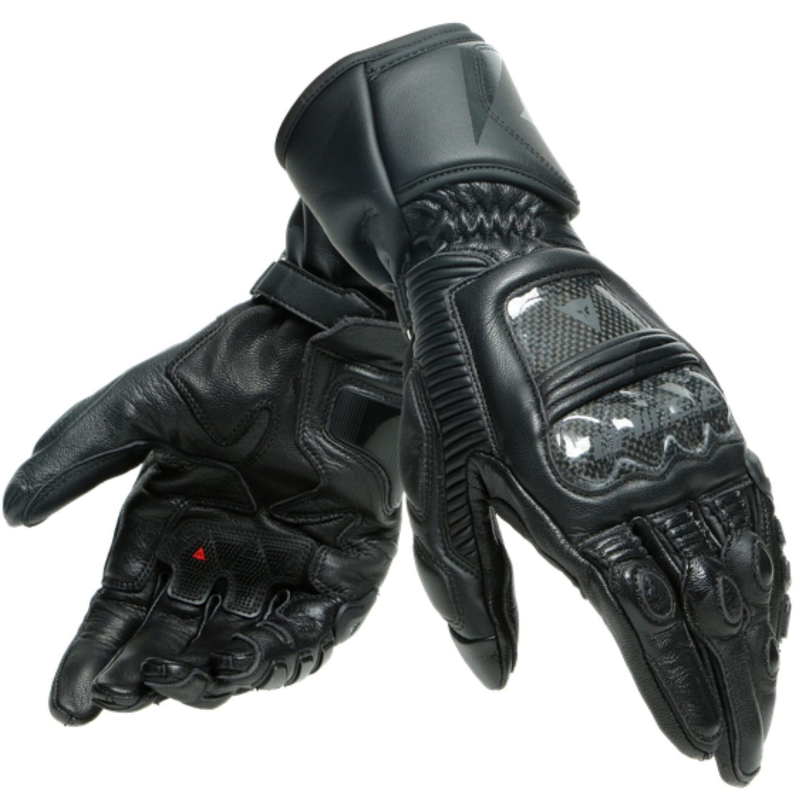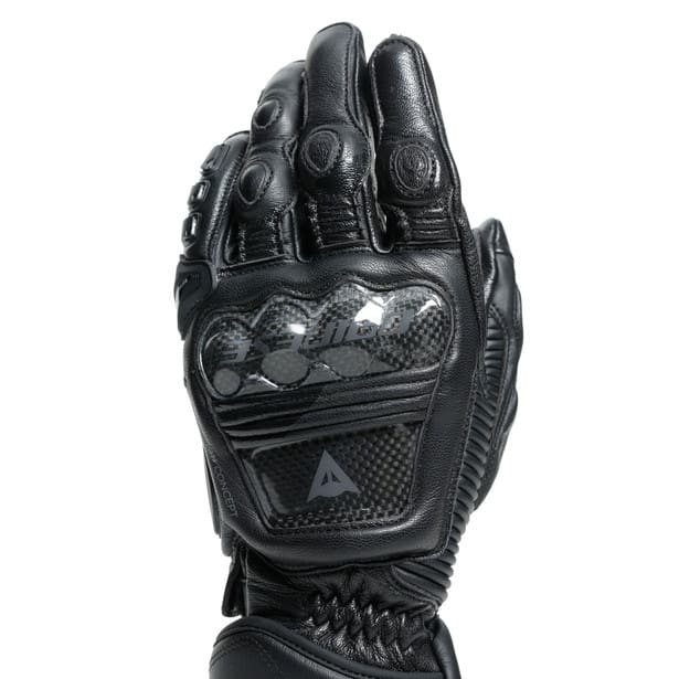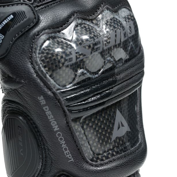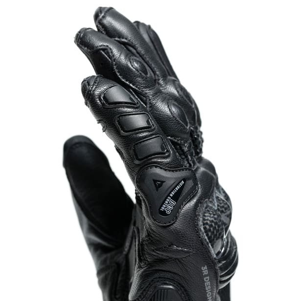 Dainese Druid 3 Leather Gloves or safe hands and the grip of a champion. This leather racing glove takes protection to the highest levels, for increased confidence when riding. Its protective elements include the exclusive preformed and thermoformed sleeve and innovative carbon inserts on the knuckles and back of the hand. Resistance is guaranteed by polyurethane inserts on the palm and at the joints, while quadruple elastic ensures great comfort and a perfect fit.