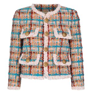 Crafted from sumptuous materials, the blazer exudes an aura of opulence and prestige. The fabric drapes elegantly, enhancing the silhouette and lending a sense of effortless grace to the wearer. Its tailored construction ensures a flattering fit, accentuating the body’s contours while allowing for ease of movement, making it as practical as it is stylish.