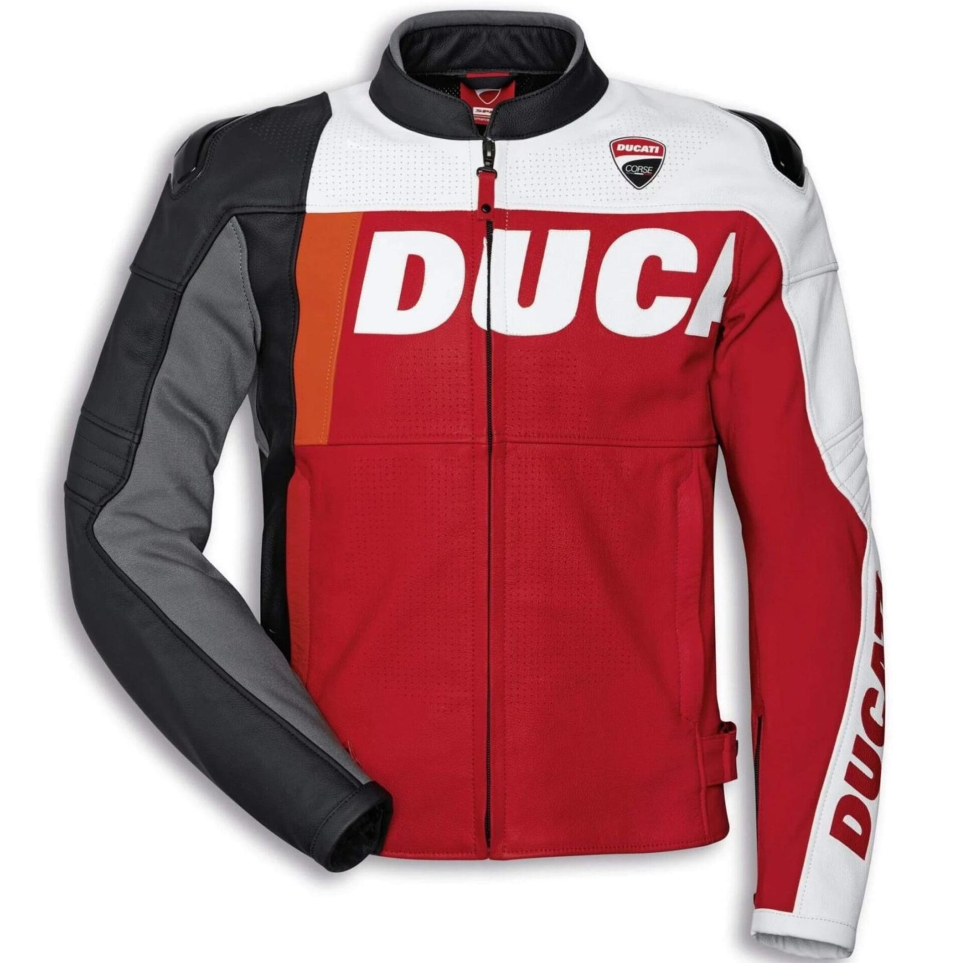 The Ducati C2 Motorbike Racing leather jacket is specially designed for professional bikers to fulfill their biking passion on track with great safety. This Jacket features excellent design & comfort, 100% genuine Cowhide leather, Approved internal & external Protectors on Shoulders, Elbows, and Back, and YKK Zippers for Performance.