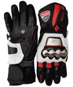 Ducati Corse Motorbike Racing Leather Gloves takes protection to the highest levels, for increased confidence when riding. Its protective elements include the exclusive preformed and thermoformed sleeve and innovative carbon inserts on the knuckles and back of the hand. Resistance of gloves is guaranteed by polyurethane inserts on the palm and at the joints, while quadruple elastic ensures great comfort and a perfect fit.