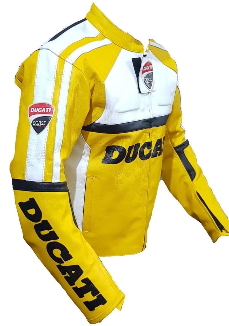 The Ducati Motorbike Leather Jacket Yellow is meticulously designed for professional bikers who value both passion and safety while on the track. This Ducati Motorbike Leather Jacket Yellow seamlessly merges exceptional design with comfort, crafted entirely from 100% genuine Cowhide leather. It is equipped with approved internal and external Protectors on the Shoulders, Elbows, and Back, ensuring optimal safety during intense rides. Additionally, high-performance YKK Zippers are utilized throughout, and the jacket offers the option of a fully ventilated Chest to keep riders cool.