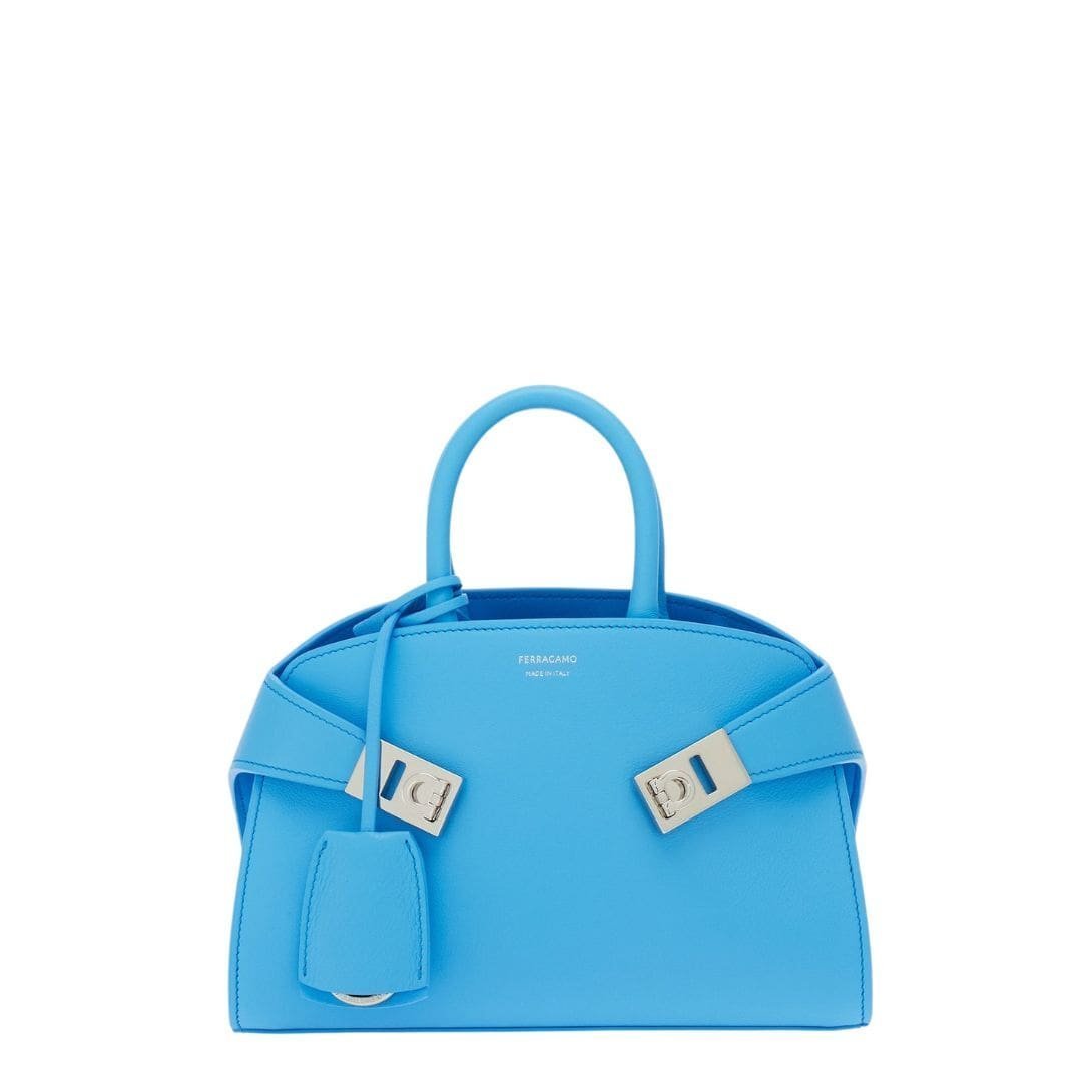 Introducing the Ferragamo Hug Mini Bag, a stunning fusion of retro-inspired design and contemporary sophistication, poised to captivate with its timeless allure. Crafted from exquisite calfskin boasting a natural grainy finish, this top handle epitomizes luxury at its finest, promising to elevate every ensemble with its understated elegance.