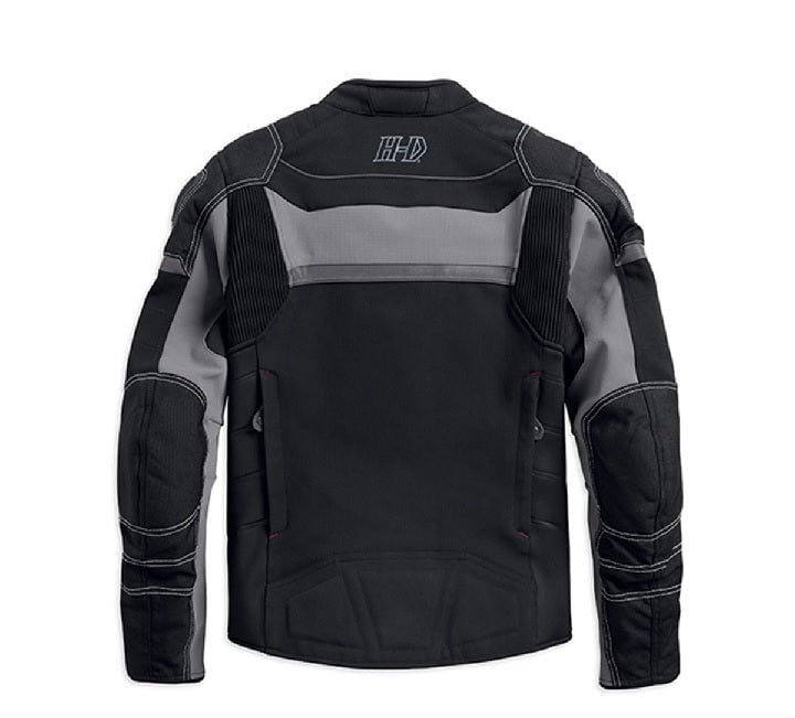 Harley Davidson Men’s FXRG Slim Fit Riding Jacket With Coolcore, Underarm, and side vents for airflow.
