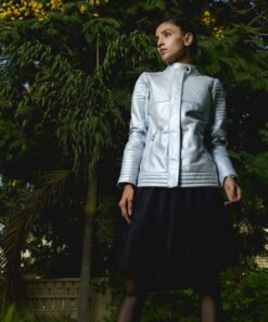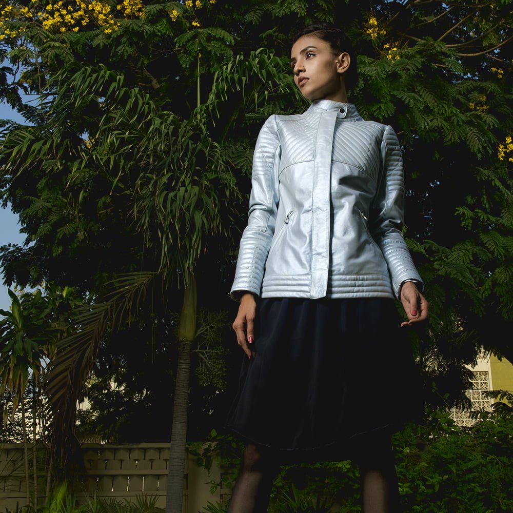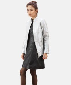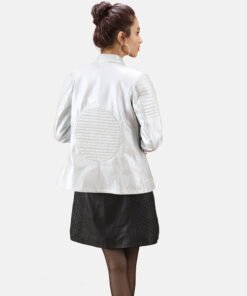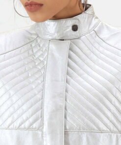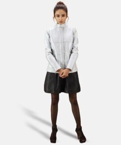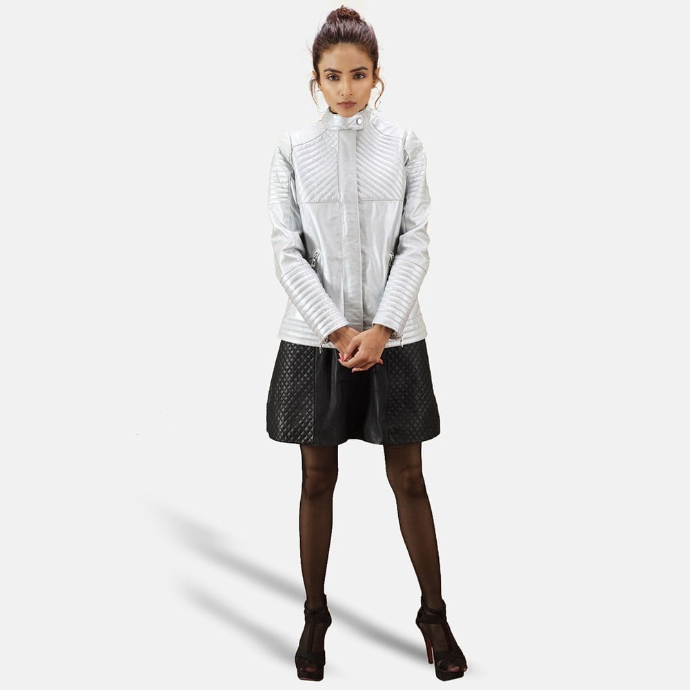 Ice Maiden Silver Quilted Leather Biker Jacket
