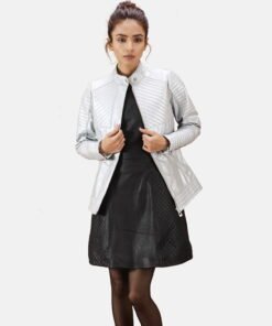 Ice Maiden Silver Quilted Leather Biker Jacket