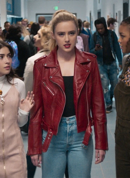 Make a bold statement with our vibrant leather jacket, inspired by the fearless character Millie Kessler, as portrayed by actress Kathryn Newton in the 2020 movie “Freaky.” This custom-made replica captures the essence of Millie’s chic yet eerie style, making it a standout piece in any ensemble.