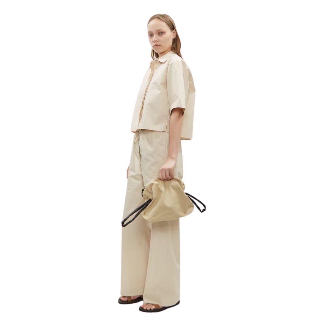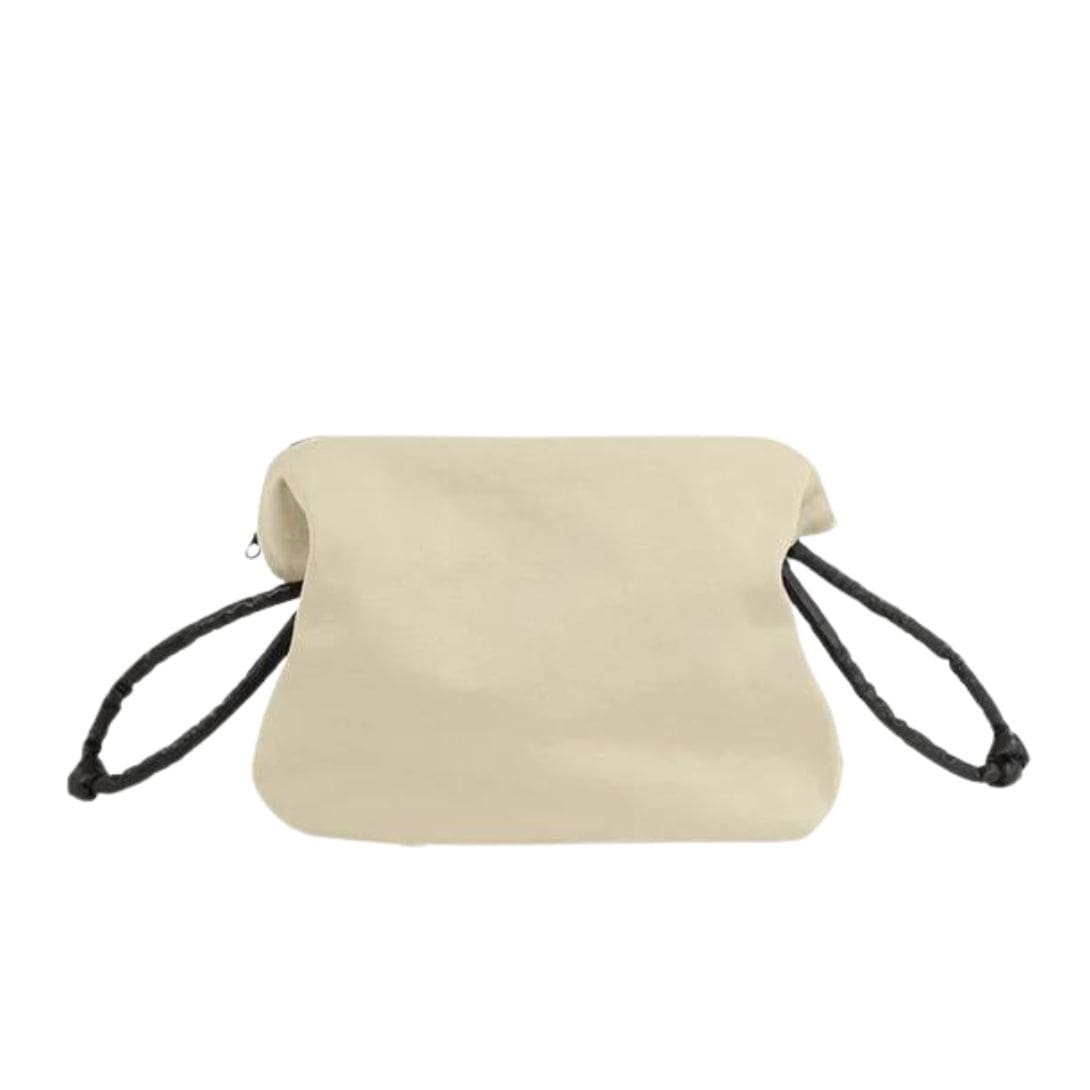 La Garconne Canvas Pouch — Beige / Oil Black bag features contrasting adjustable side straps crafted from durable cotton canvas. It includes a top bonded zipper closure and is fully lined in black technical fabric.