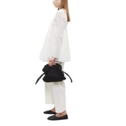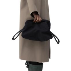 La Garconne Canvas Pouch — BLACK/ Oil Black bag features contrasting adjustable side straps crafted from durable cotton canvas. It includes a top bonded zipper closure and is fully lined in black technical fabric.