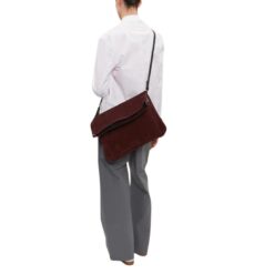 Dries Van Noten presents a deep burgundy La Garconne Dries Van Noten Suede Large Soft Bag with a soft suede leather trim. The adjustable and removable strap allows you to wear this bag in three versatile ways: with a fold-over top, an open top, or as a tote with a short handle. It features an interior zip pocket and an embossed logo. The bag is unlined.